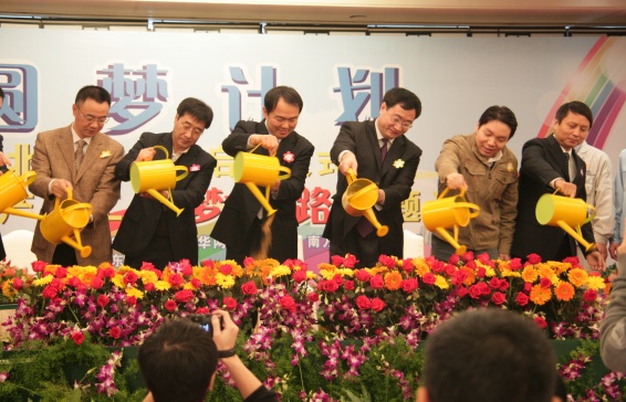 仪式上,陈东、魏紫川、王鹏、段功伟、潘赤农、赵东辉、詹立雄等领导和嘉宾手持洒水壶浇灌象征着新生代产业工人梦想的花苗,催化花苗茁壮成长,寓意着新生代产业工人的所有梦想都能开花,正式启动了圆梦计划·北大100。