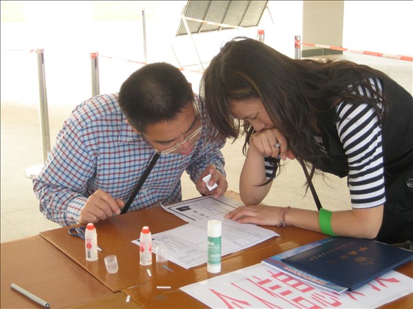 26日上午,报考人员根据主办单位的提前通知,带上需提交的各样资料,早早来到分考点进行现场信息确认。工作人员根据项目的要求,认真地对每位报考人员的报考资料进行核对,并为报考人员进行准考证相片的拍摄和准考证的制作。部分报考人员由于疏忽漏带个别需提交的资料,但是现场工作人员耐心仔细地为他们说明并协助他们对缺少的资料进行补办。虽然报考人员较多,程序较多且要求严谨,但由于工作人员对程序进行了预演练,评估了可能出现的问题和准备好应对措施,因此,现场信息确认程序在有条不紊地进行着,报考人员的信息确认一般用时不超过5分钟。